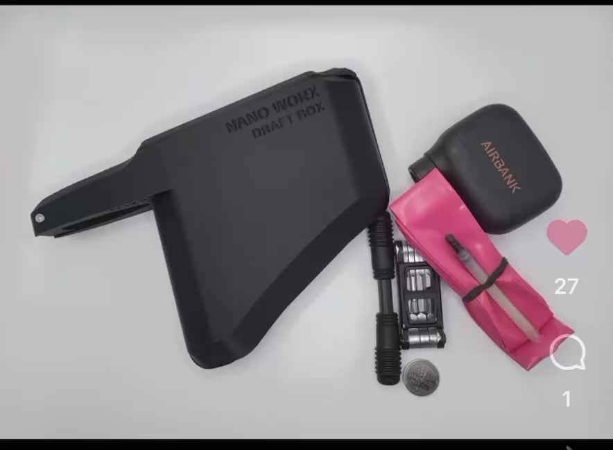 An aero inspired storage compartment made specifically for the Canyon Aeroad. The lid of the Draft box doubles as a tire lever and has a dedicated location to store a CR2032 battery.